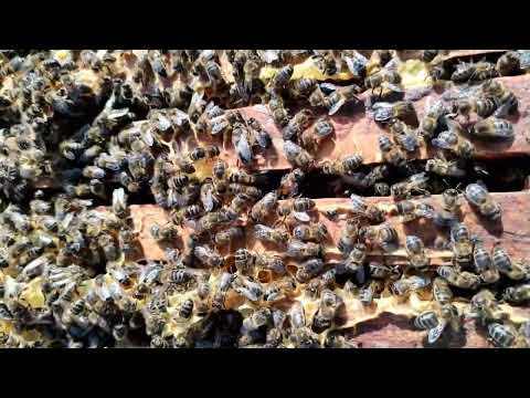 Cuando la abeja vuelve a su colmena entra por la piquera... (ranura por donde entran y salen las abejas)...para la recolección del polen en dicha piquera se colocan unas cajitas de madera...
